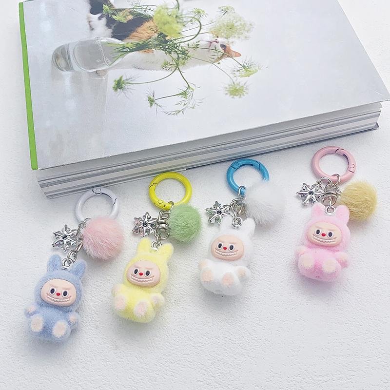 Niedlicher Mode Beflockter Labubu Schlüsselanhänger Cartoon Kawaii Puppe Schlüsselanhänger Anhänger Exquisite Rucksack Dekoration Zubehör Geschenke