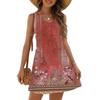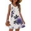 Damenmode Lässig Sommer Ärmellos Tasche V-Ausschnitt Vintage Blumenmuster Kleid Strand Sommerkleid