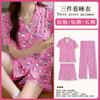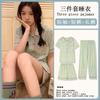 GMXIA Sommermode Pyjama Damen Kurzarm Dreiteiliges Set, Baumwollähnlich Cartoon Student Hauskleidung, Kann Draußen Getragen Werden