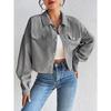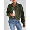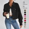 Temperament Slim Fit Kurzer Reißverschluss-Cardigan mit Revers und Cordjacke