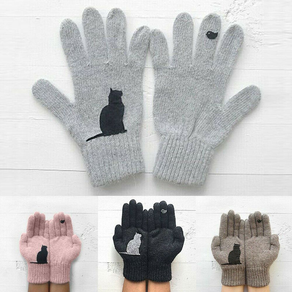 Mode Weiche Dicke Warme Fäustlinge Vollfingerhandschuhe Niedliche Katze Strickhandschuhe