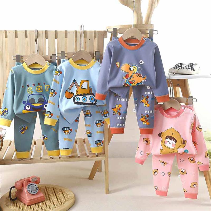 Cartoon Kinder 100% Baumwolle Unterwäsche Set Jungen & Mädchen Thermopyjama Weiches Langarm-Oberteil & Hose Gemütliche Homewear & Nachtwäsche