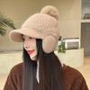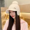 Hut Damen Herbst und Winter gestrickte Wollmütze Vielseitige verdickte kältefeste Ohrenschutzmütze Winterwarme Plüschmütze