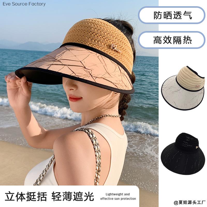 Summer new hat women's sunshade sunscreen empty top hat fashion knitted big brim summer outdoor sports sun hat