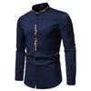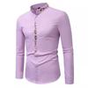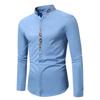 Herrenmode Stehkragen Bestickte Hemden Einfarbig Langarm Knöpfe Slim Business Casual Arbeitshemd