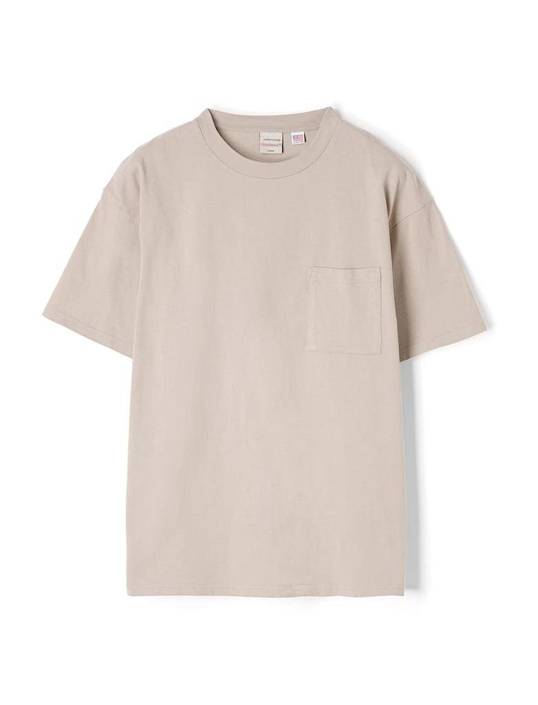 Kurzarm Rundhals Tasche Schwergewicht USA Baumwolle Schwergewicht [Good Wear] T-Shirt 7.6oz Herren (M, Greige)