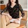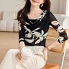 New Spring and Autumn Women's Style O-Neck Long Sleeve Slim Gauze Printed Temperament Pullovers Trendy Commute All-match Tops
