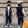 Winter Jungen Bekleidungssets Fleece Kleidung Sets für Kinder Buchstaben Kinder Jacke+Hose 2-teilige Anzüge Baby Trainingsanzug