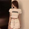 Retro Amerikanisches Hot Girl Kurzarm Crop Top - Damen Sommer Schlankmachendes High Waist T-Shirt
