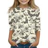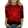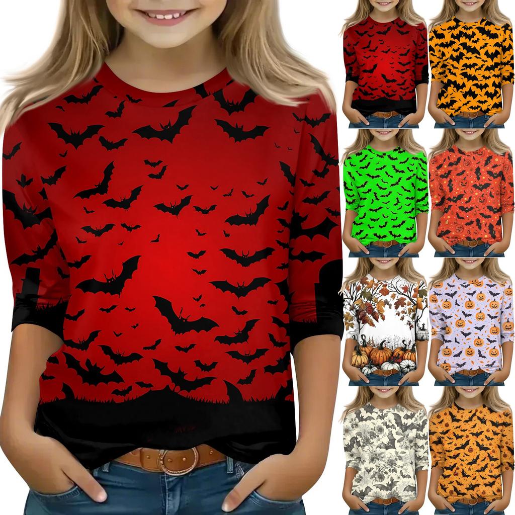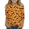 Kinder 3/4-Ärmel Tops Lässiges Halloween-Print T-Shirt Rundhals Pullover Bluse