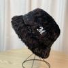 Fischerhut Kinder Herbst und Winter Warm Stickerei Alphabet Lammfell Bucket Hat Ohrenschützer Kältehut
