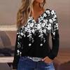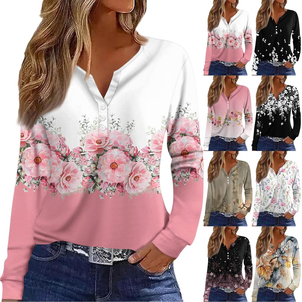 Damen-T-Shirt, T-Shirt, Knopfleiste, langärmelig, für den Alltag, Wochenende, modisch, Basic, V-Ausschnitt, normales Oberteil