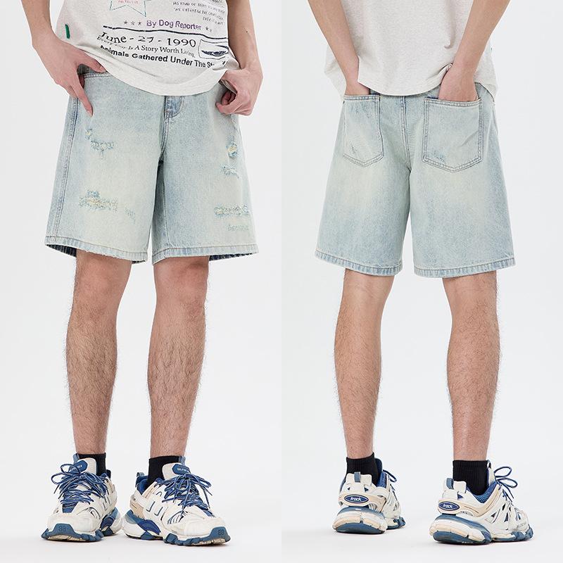 Neue Amerikanische Lässige und Hübsche Retro Denim Mid-Hosen Herren Lockere Shorts im Sommer