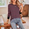 Marineblau gestreiftes T-Shirt Locker Langärmliges Sweatshirt Gestreiftes Rundhals-T-Shirt Oberteil