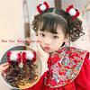 2pcs Tang Suit Children's Bow Wig Kids Headwear Red Bowknot Hairclip New Year Festive