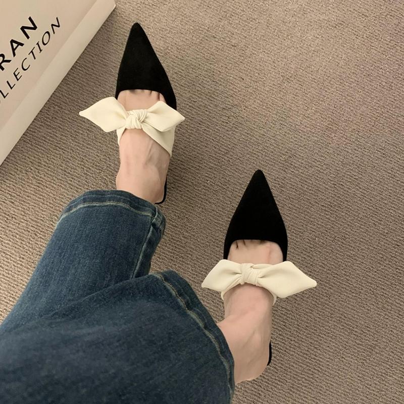 Female Shoes Cover Toe Butterfly-Knot Mules for Women 2024 Slippers Casual Square Heel Loafers Slides Med New Luxury Pointed