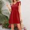 Damen Sommer Mode Einfarbig V-Ausschnitt Holzohren Taille Taille Urlaub Freizeitkleid