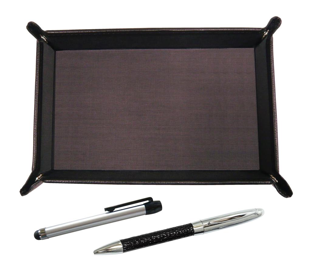 Shibochoco color cowhide pen metal touch silver stick and genuine leather roll rotating ballpoint pen director black tray, set, TRATYO-ALST-PD03-B