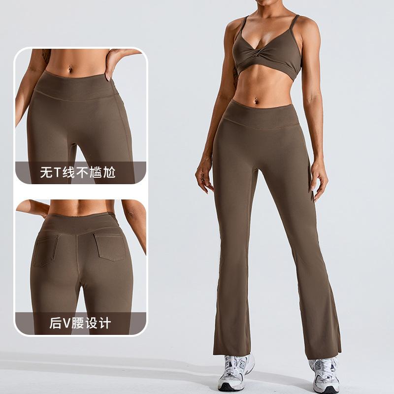 Sweatpants European and American hip lift yoga flared pants women's wide legs wear high waist slightly pull casual fitness quick drying