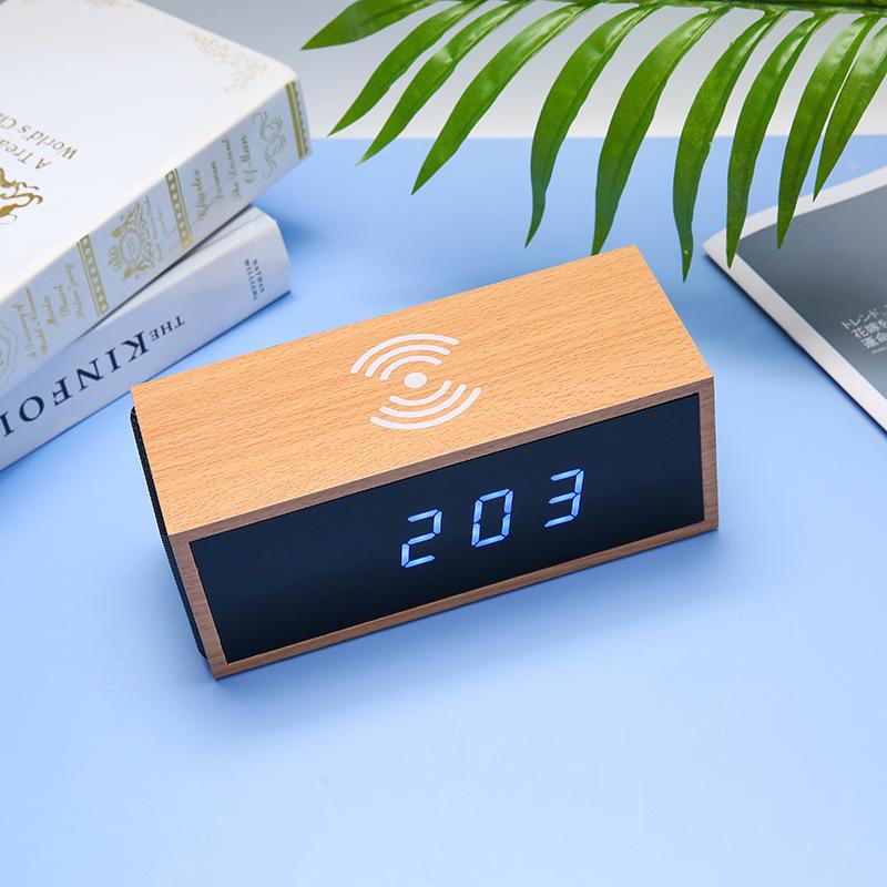 Bluetooth Audio Electronic Clock Wireless Charging Clock Smart Bluetooth Digital Clock Creative Wooden Speaker Alarm Clock