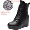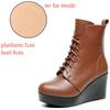 6cm 8cm Kleine Große Größe 33-43 Vintage Weiche Lederstiefel Damen Plateau Schuhe Herbst 2025 Hohe Absätze Keile Kurze Stiefeletten