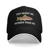 Fish Want Me Women Fear Me Men Women Baseball Caps Fishing Jokes Distressed Denim Caps Hat Summer Gift Snapback