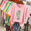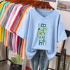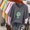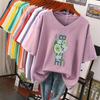 Kurzärmeliges T-Shirt, Locker sitzend, Schlankmachendes bedrucktes V-Ausschnitt-Top für Damen