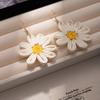 Sommer Handgewebte Gänseblümchen Ohrringe Strandresort-Stil Bast Kontrastierende Blumenohrringe