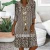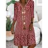 Damen Sommer Midi Kleid V-Ausschnitt Halbarm Knielange Kleider Lässig Blumendruck Boho Kleid