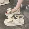 Keilabsatz mit Plateau Wasserdicht Aprikose Outdoor Perle Damenschuhe Zehenoffene Sandalen für Frauen Schleife Sommer 2025 Schuhe Flach Sale