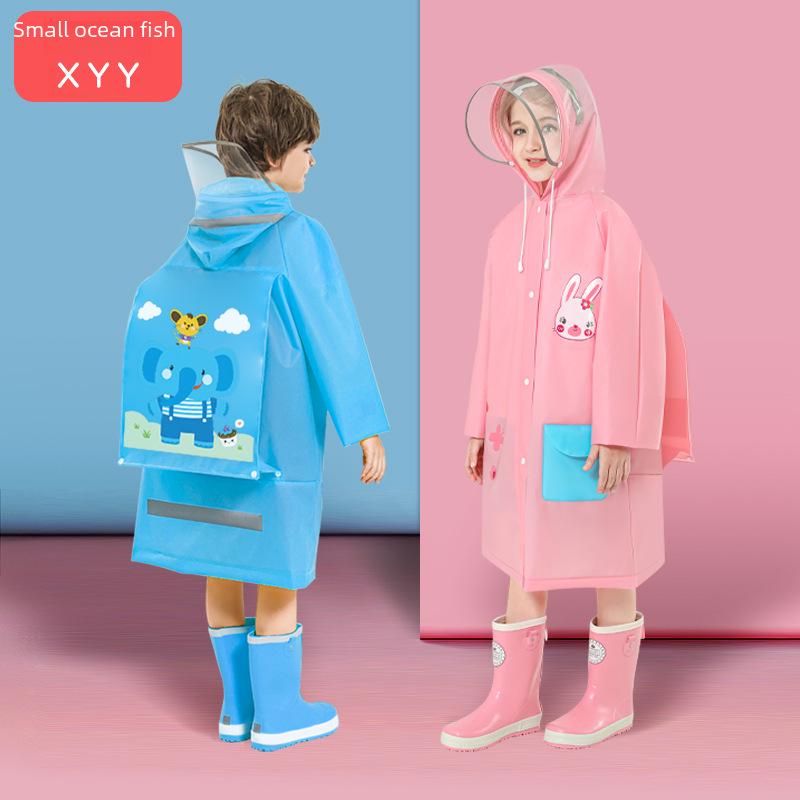Koreanischer Kinder-Ganzkörper-Regenmantel: Einteiliger Poncho für Grundschüler mit Platz für Rucksäcke