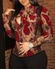 2021 Damen Frühling PU Leder V-Ausschnitt Knopfleiste Bluse mit Taschen