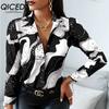 QICED Modische, lässige Langarm-Blusen und -Hemden mit POLO-Ausschnitt für Damen