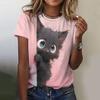Damen T-Shirt 3D Niedliches Tier Mode Katze Print T-Shirt Sommer Top Lässig Kurzarm Y2k Übergroße Kleidung