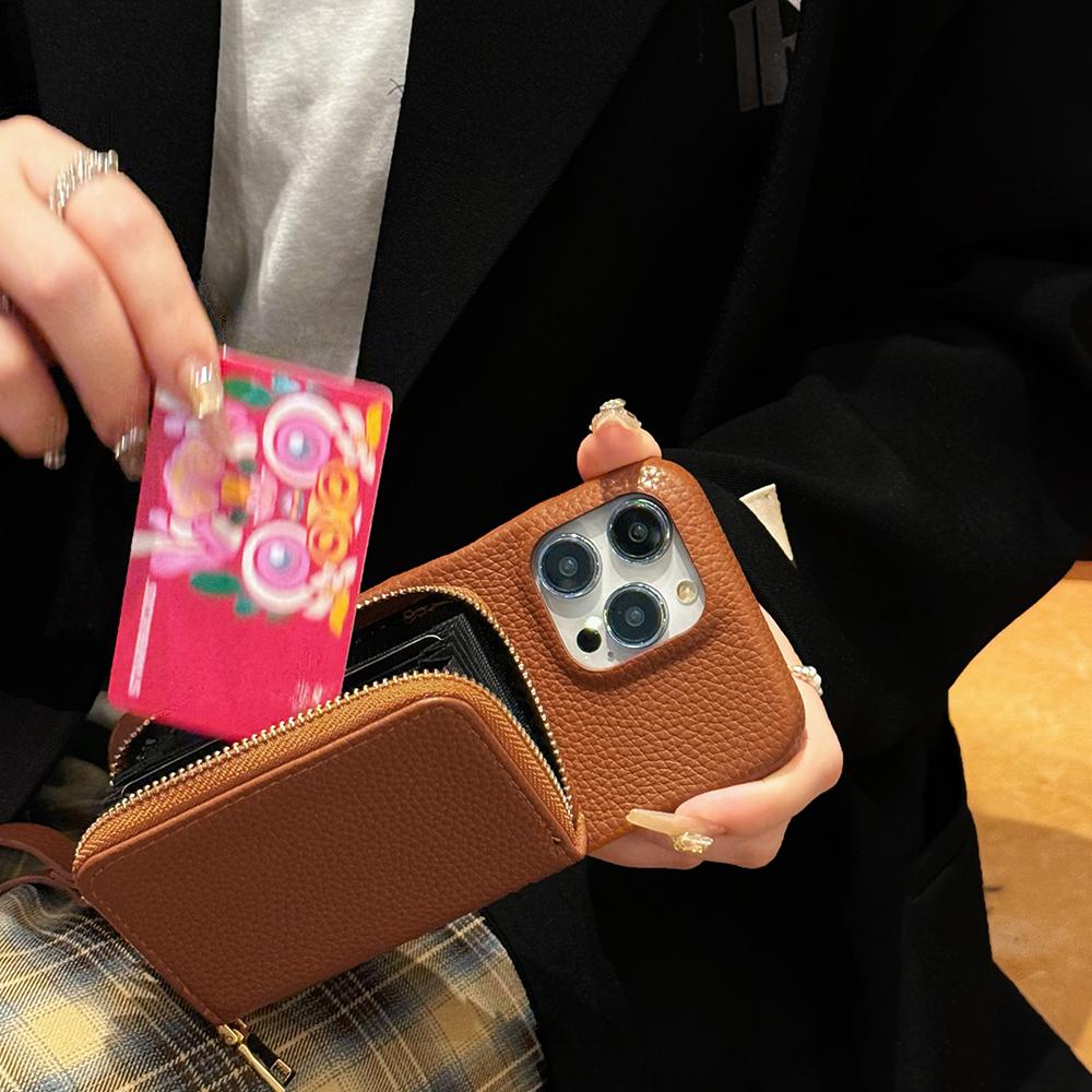 Für iPhone 15 Pro Max Hülle Reißverschluss Kartenfächer PU Leder Handy Rückseite mit Handschlaufe