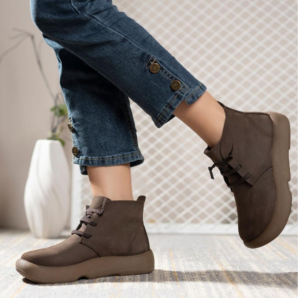 Rindsleder Plateau Martin Stiefel Damen Herbst und Winter neue vielseitige Leder Kurzstiefel Samt lässig Retro Damenschuhe