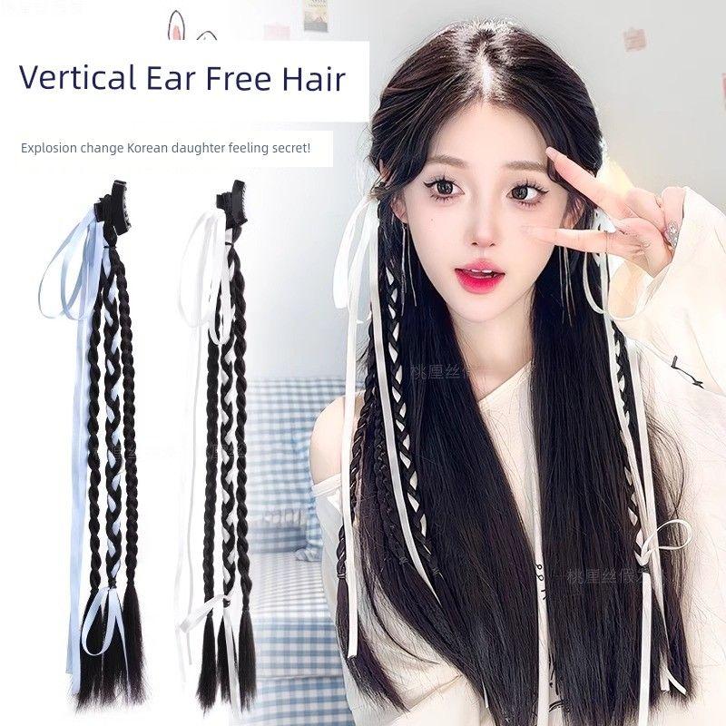 False Braids Women's Grip Ribbon Hair Accessory for Ponytail Low Tie Bows Pairs Cable Stitch Long Braid New Chinese Wig