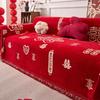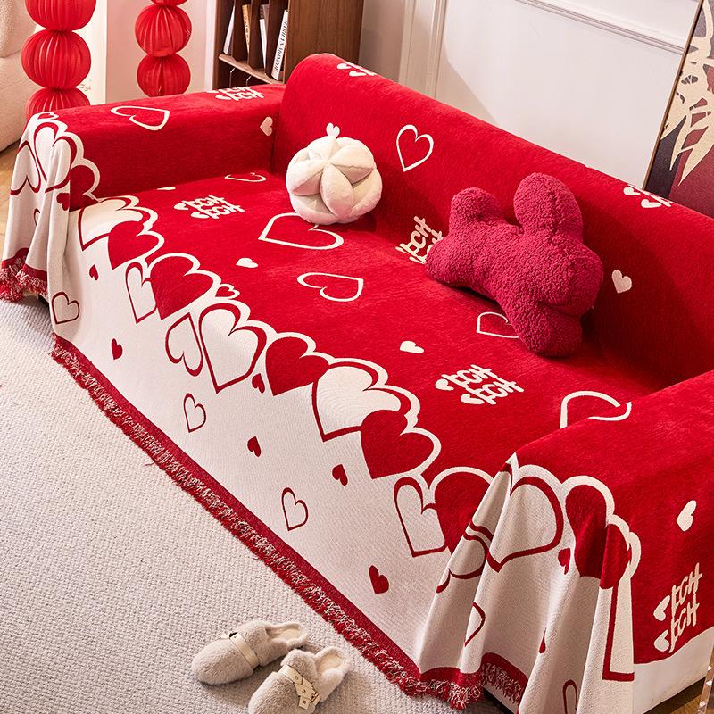 Einfacher und moderner Chenille-Sofaüberwurf festliches Rot Anti-Katzenkratzüberzug Stoffhandtuch rutschfest gerade Reihe Sofaüberwurfstoff