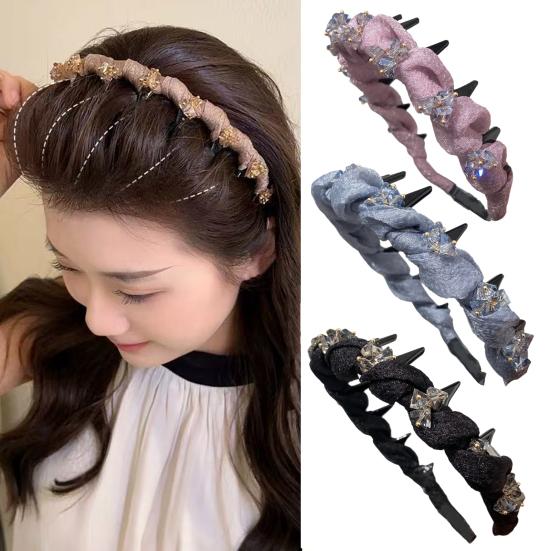 Damen Stirnband Glänzende Strasssteine Leuchtende Farbe Stoffbezug Haarreif Anti-Rutsch Zähne Stirnband Haarschmuck