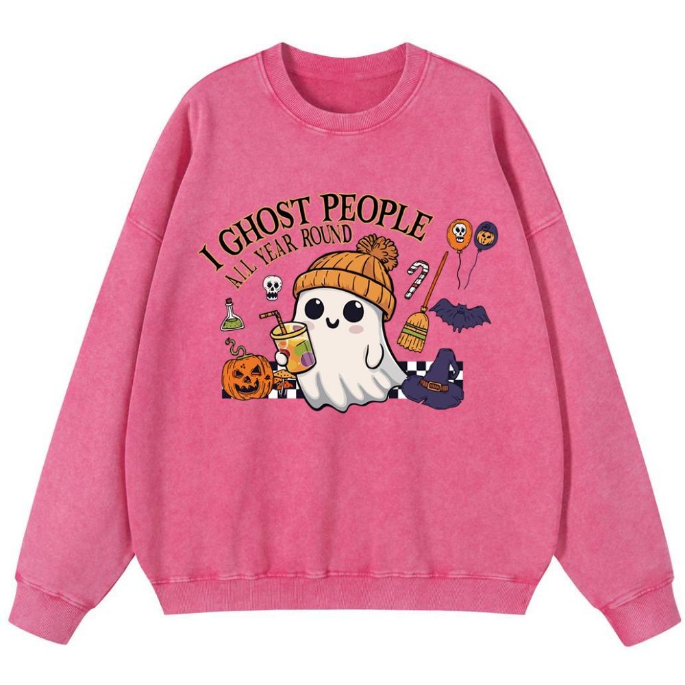 Ich geiste Leute das ganze Jahr über Frau Vintage Gewaschene Baumwolle Sweatshirt Street Dünner Stil Übergroßer Pullover Hipster