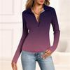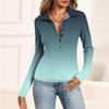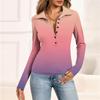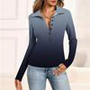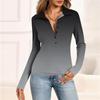 Damenmode Lässig Bedrucktes V-Ausschnitt Langarm Knopfleiste Oberteil