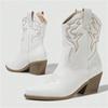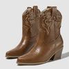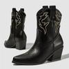 Winter Design Punk Stil Stickerei Spitzzehe Damen Stiefeletten Quadratische Niedrige Absätze Kurze Westernstiefeletten Schuhe