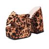 Wildleder Schleife Eckige Zehenpartie Superhoher Dicker Absatz Laufsteg Damen Slipper Plateau Leopardenmuster Sexy Outdoor Slipper
