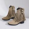 Herbst und Winter Neuer Stil Mode High-Heel Damenstiefel Einfarbig Runde Spitze Quasten Metalldekoration Blockabsatz Damenstiefel