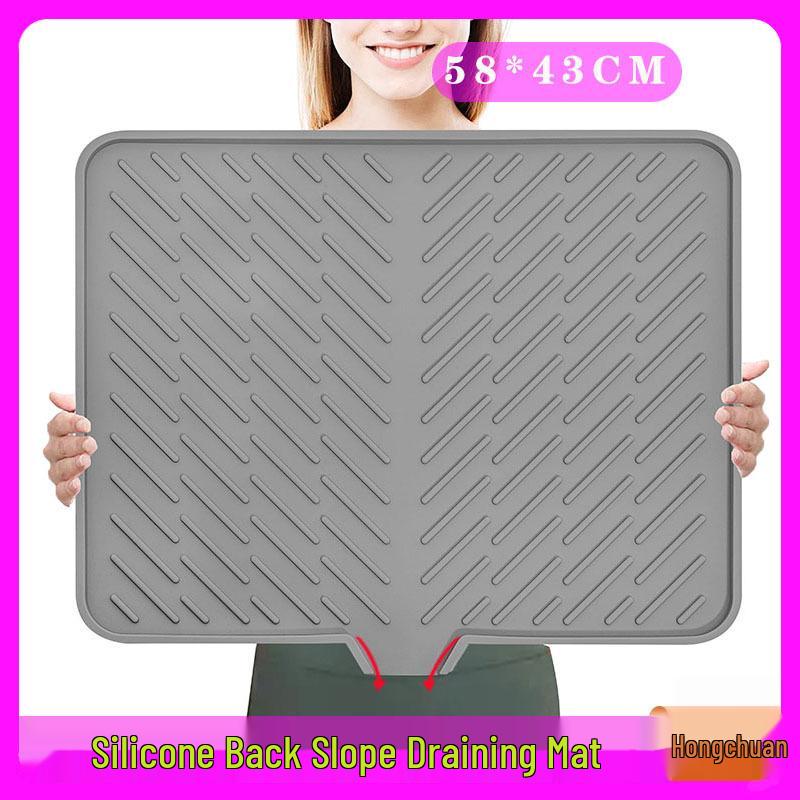 Große Silikon-Abtropfmatte mit Ableitungsöffnung zum Trocknen von Schüsseln und Geschirr