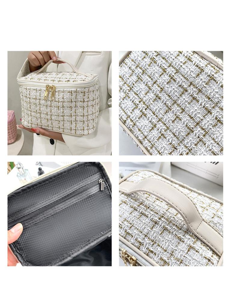 New Korean Style Plaid Portable Small Fragrance Cosmetic Bag Large Capacity Portable Toiletry Storage Bag Makeup Box Travel Wholesale