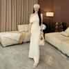 Commuting wear super good-looking one-word shoulder slim fit hip long dress casual temperament dress summer