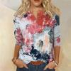 Knopf V-Ausschnitt 3D-bedrucktes Top Modische lässige langärmelige Damen-T-Shirts