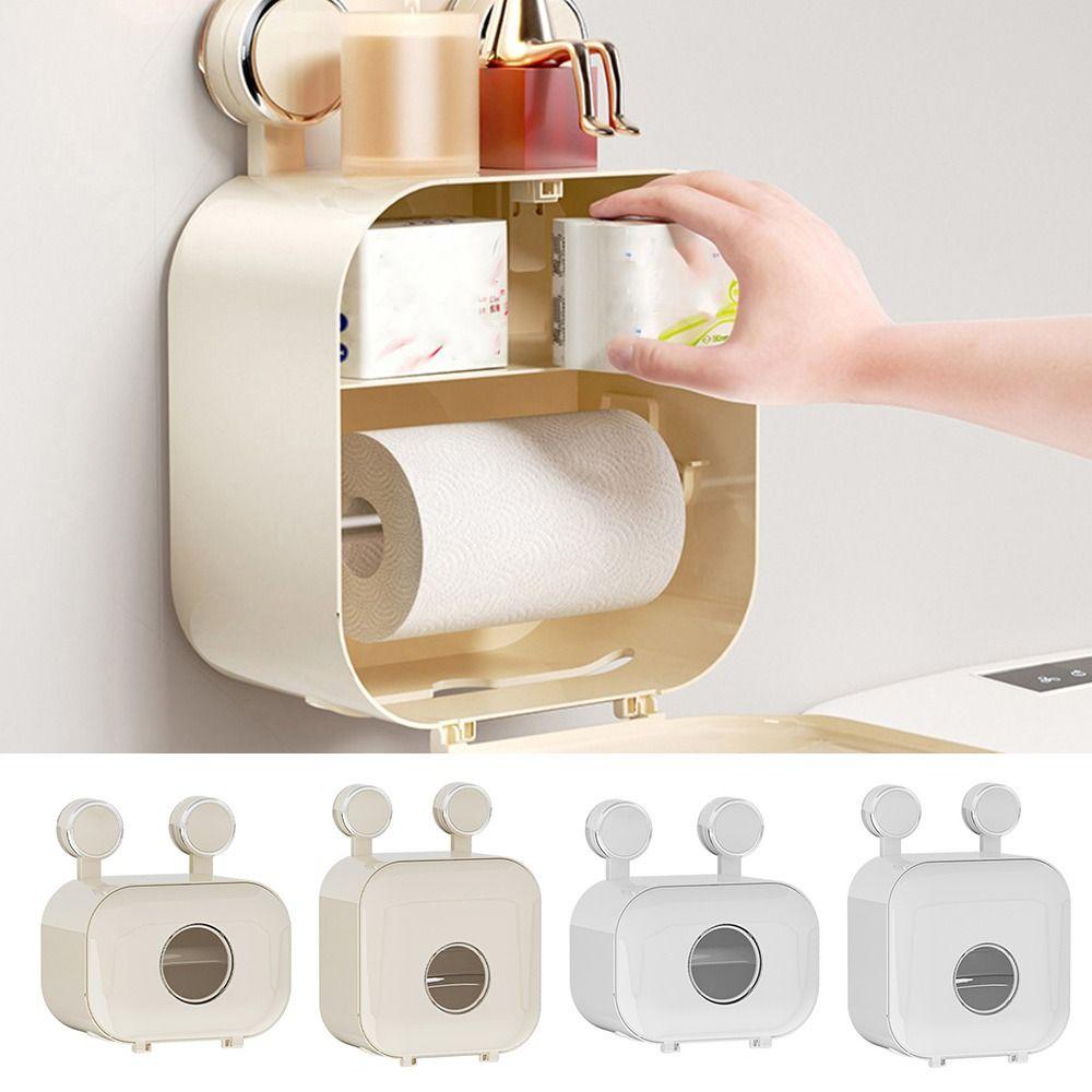 White Beige Tissue Storage Box Sucker Install Paper Towel Box Organizer