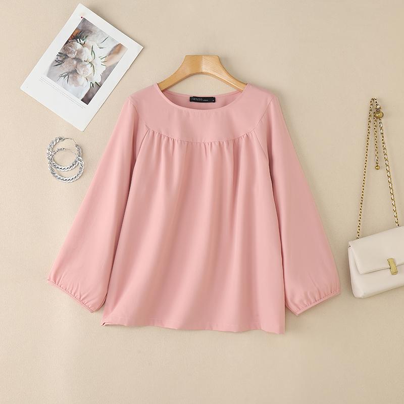 ZANZEA Damen Lässige Lockere Rundhals 3/4 Ärmel Einfaches Hemdbluse